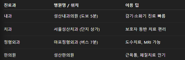 🏥 3. 성산시영 근처 병원 분류별 정리