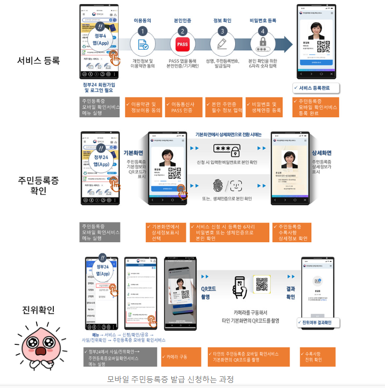 서비스 등록 완료: 모든 절차를 마친 후, 서비스 등록이 완료됩니다. 이제 모바일 주민등록증을 사용할 준비가 된 것입니다. 등록 완료 후에는 모바일 기기에서 언제든지 주민등록증을 조회하고 사용할 수 있습니다.
